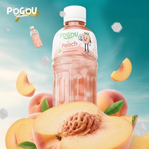 POGOU Peach Flavoured Fruit Drink 330ml – Refreshing Thai Beverage | Real Peach Juice Taste | Non-Carbonated Soft Drink | Hydrating Summer Cooler | Pack of 6 Bottles | Product of Thailand