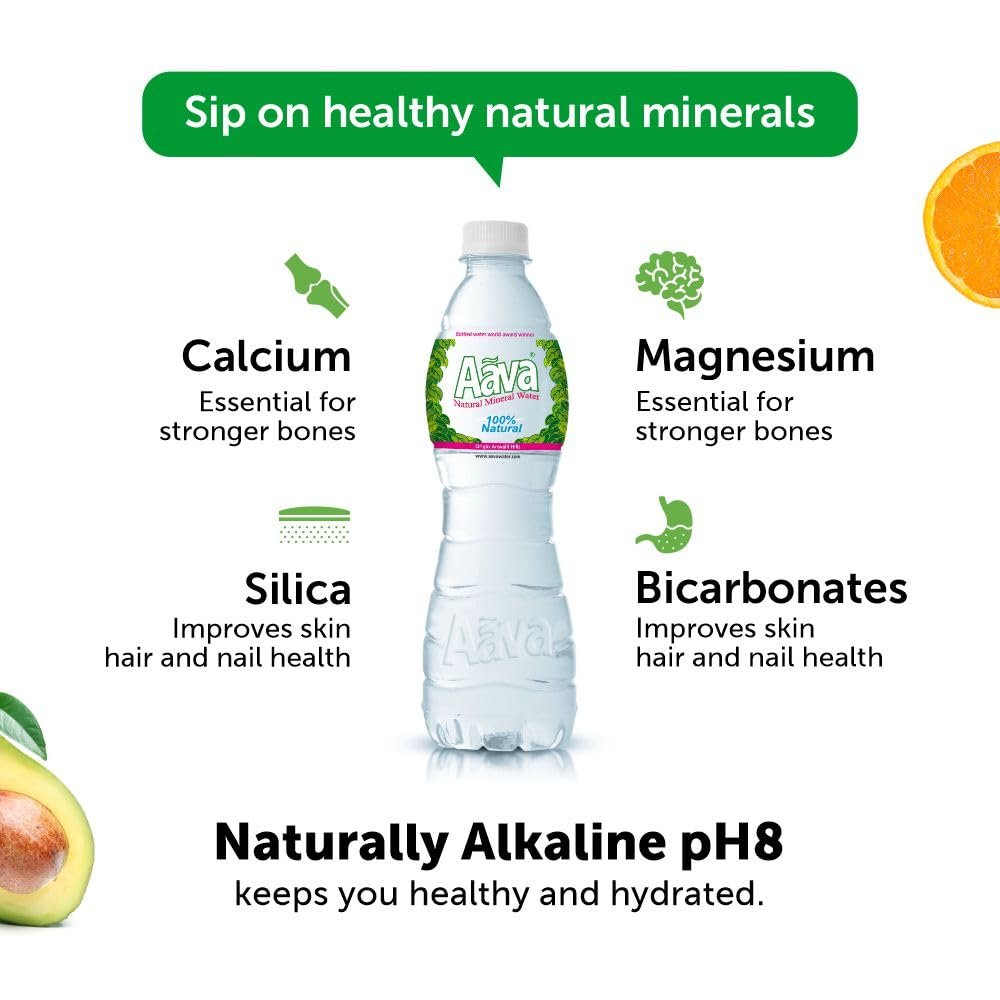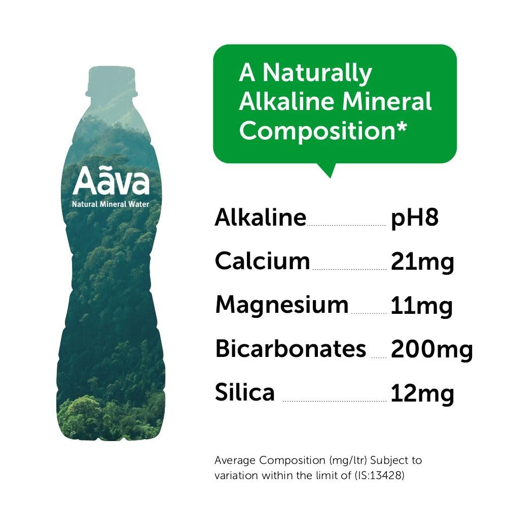 Details: Aava is India’s award-winning naturally alkaline mineral water, trusted for 20 years. With a natural pH of 8 and origin in the Aravalli Hills, Aava is born alkaline — not made. It is rich in naturally occurring calcium, magnesium, bicarbonates, and silica — minerals that support digestion, promote cellular hydration, aid mineral balance, and contribute to overall wellness — all without any artificial processing or additives. As it travels underground, Aava is naturally filtered through layers of clay and rock, enriching it with a unique mineral profile. Aava is bottled at source in a fully automated, state-of-the-art facility, untouched by human hands and completely free from RO, UV, ozone, or chemical treatments that cause water rejection. It’s pure, healthy hydration in 100% recyclable, BPA-free PET — good for you and sustainable for the planet. With over 3,50,000 bottles served daily, Aava is the preferred choice of leading airlines, luxury hotels, global brands, and 3500+ premium institutions across India.