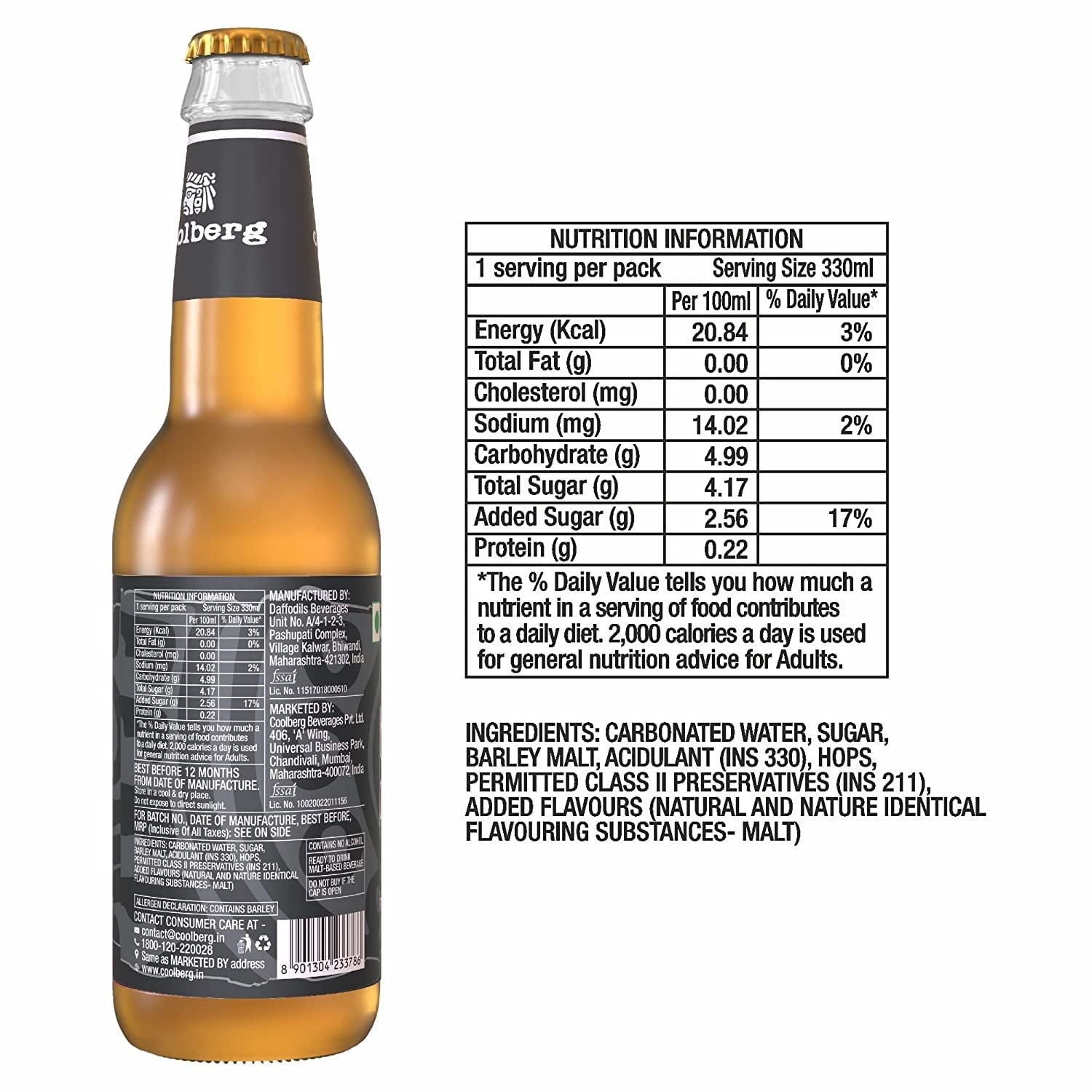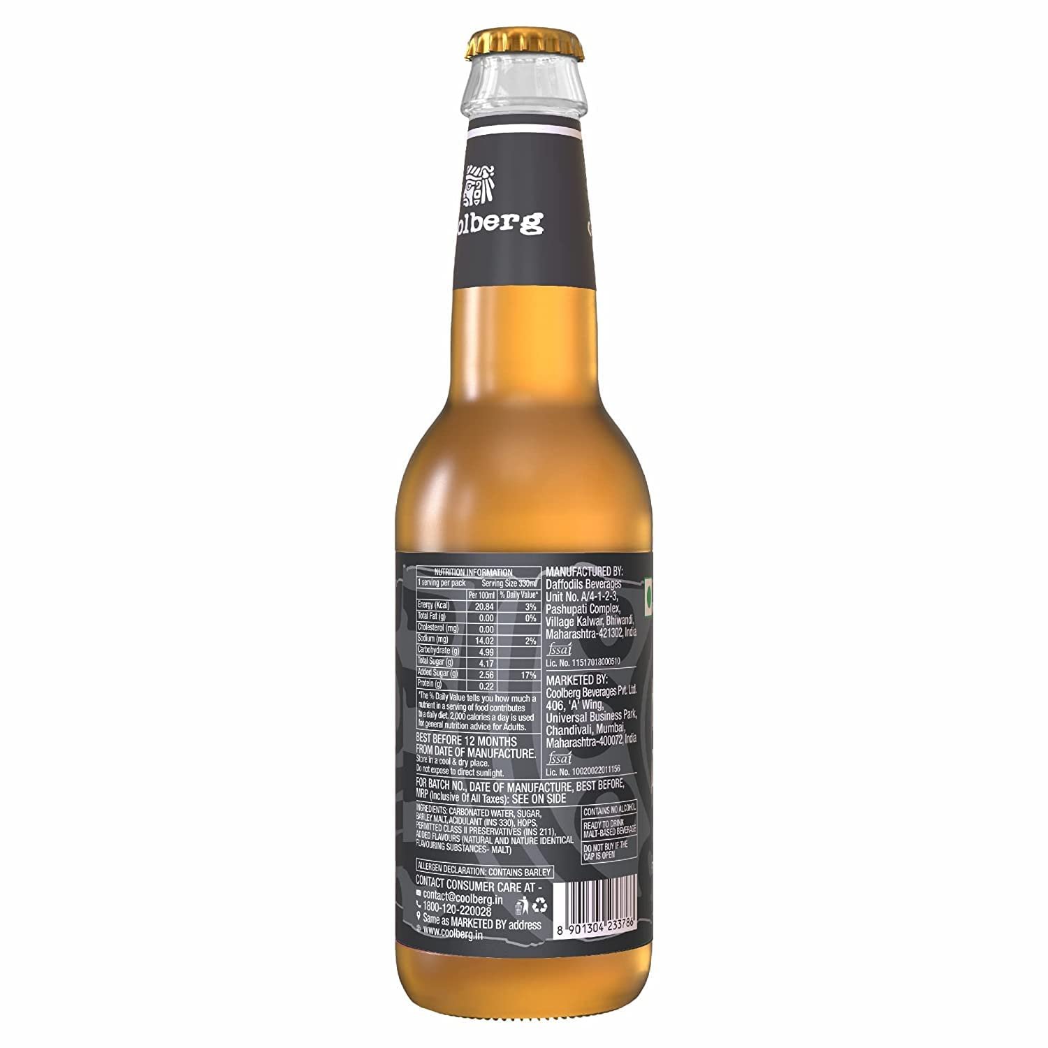 Details: Coolberg Malt Beer is a Non-Alcoholic Beer. This NAB has toasty notes of barley malts and hops and a distinctive musky aroma. It is made from the finest natural barley malts extracts. It is carbonated and has a serious spunk.