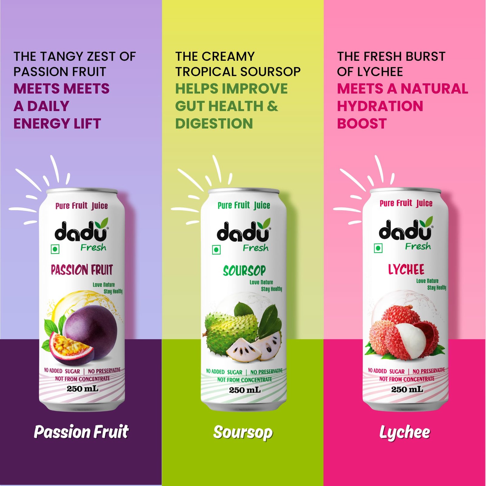 - Tropical Fruit Variety: Enjoy a delightful assortment of 4 canned fruit juices – soursop, passion fruit, mixed fruit, and lychee.