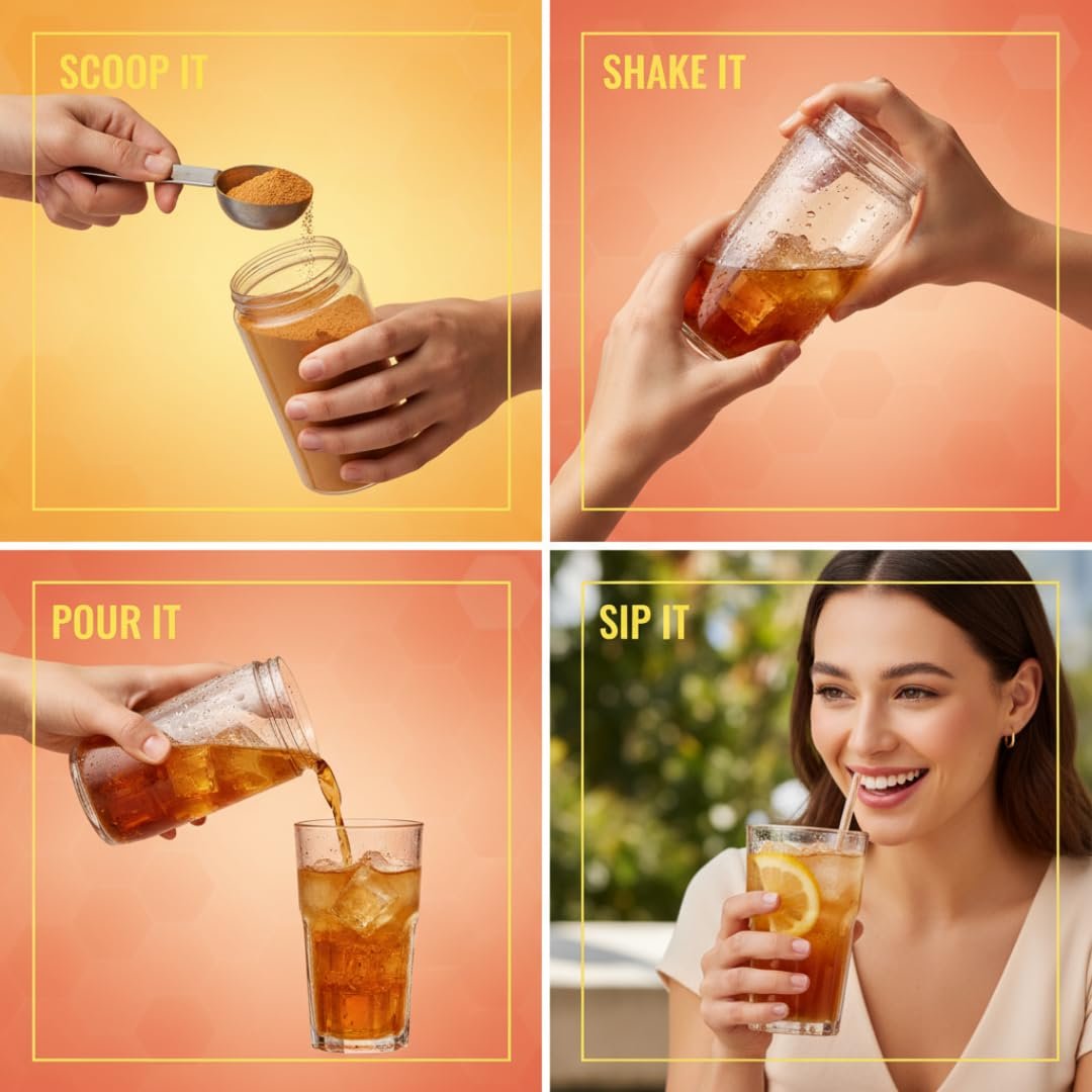 - Instant & Easy-to-Prepare Iced Tea Just mix the powder with cold water, stir, and enjoy a refreshing iced tea in seconds — no brewing or steeping required!