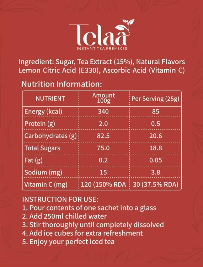 - Quick & Easy Preparation – Single-serve sachets dissolve instantly in cold water; ideal for on-the-go refreshment.