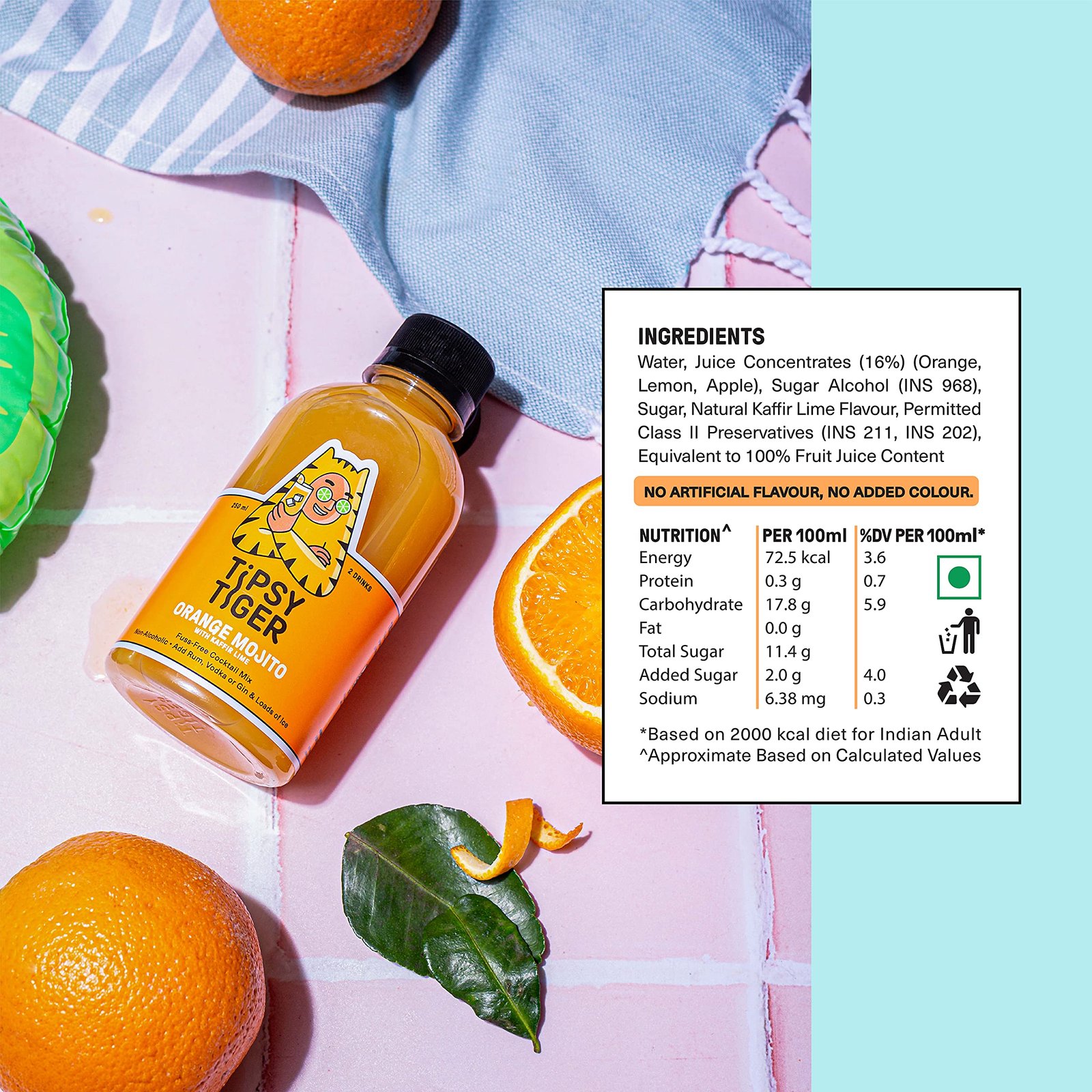 - Package Content: 3 X 250 Ml of orange mojito with kaffir lime; Quantity: 750 Ml (Each 250 Ml); Shelf Life: 334 Days; Ingredient Type: Vegetarian