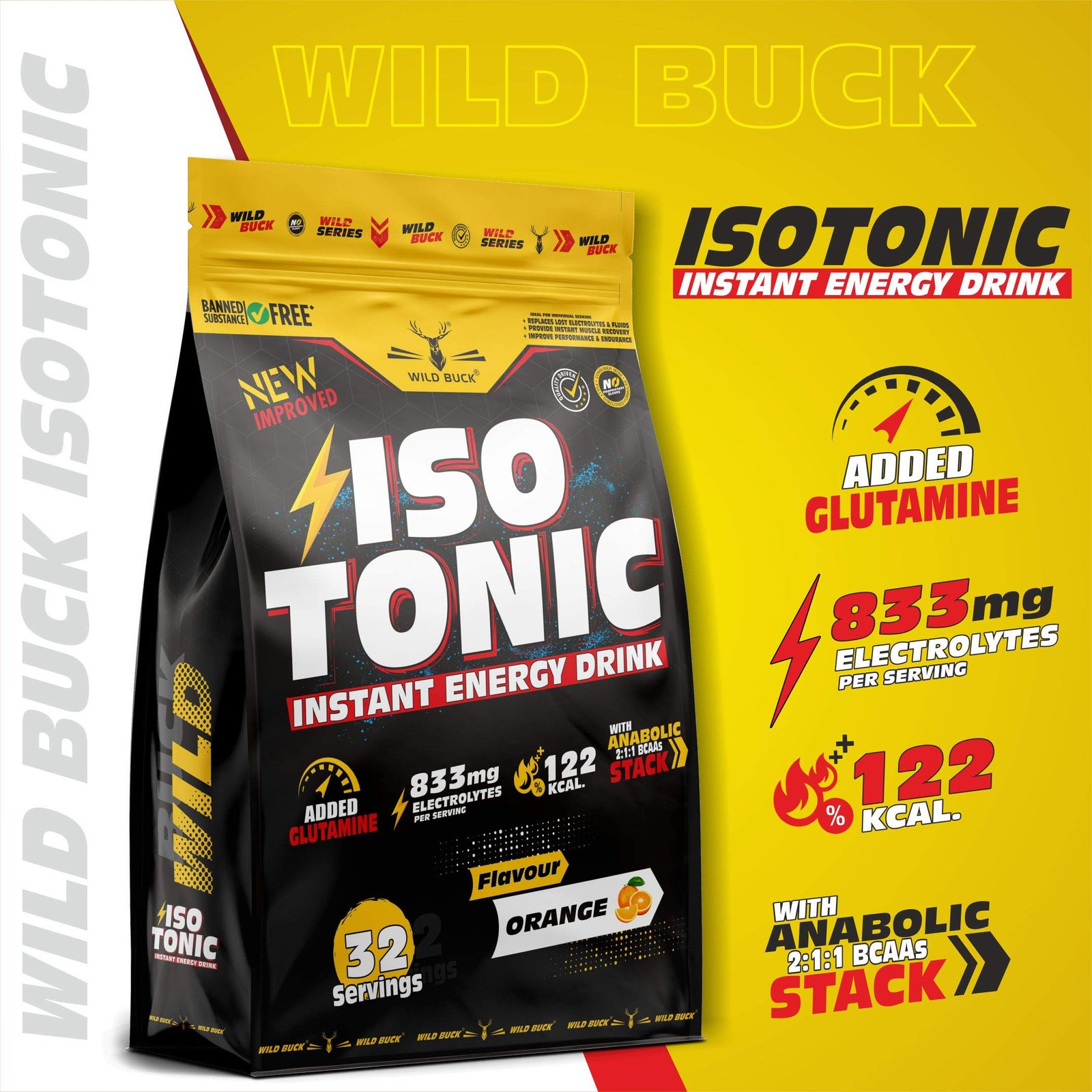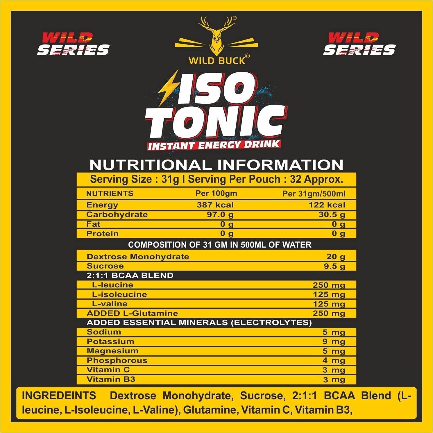 • Bubbling with refreshing flavours, each serving of Wild Buck Isotonic Instant Energy Formula helps to serve 833mg electrolyte that prevents cramps and renews energy