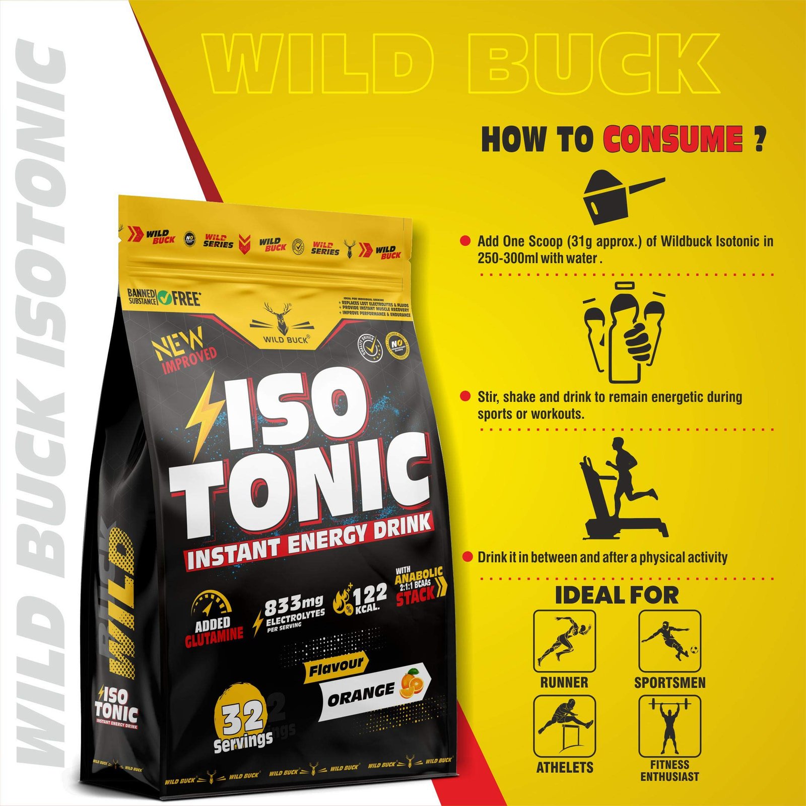 • Wild Buck Isotonic is a revolutionary sports drink for athletes, weight lifters and players